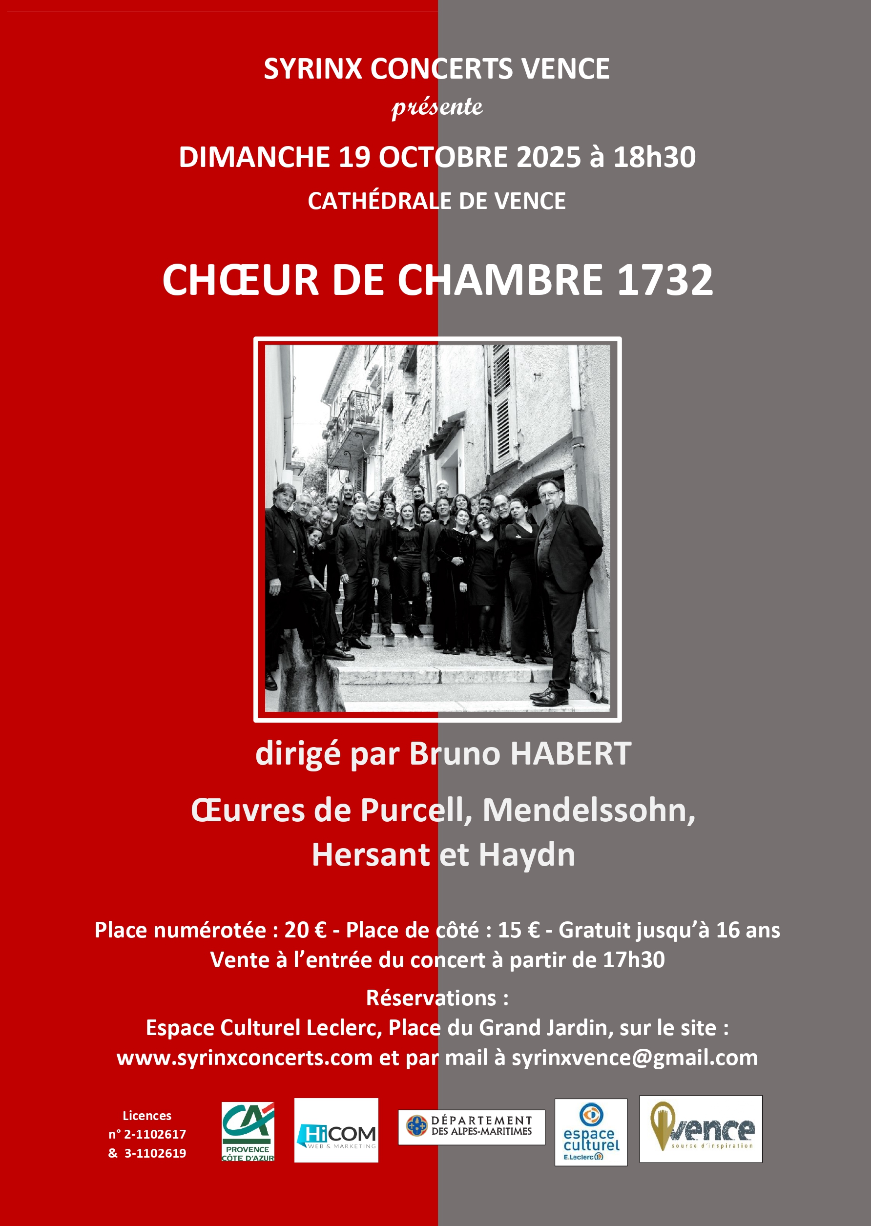 Syrinx Concerts a le plaisir de vous convier à son prochain rendez-vous musical qui aura lieu le dimanche 19 octobre à 18h30 à la Cathédrale de Vence.